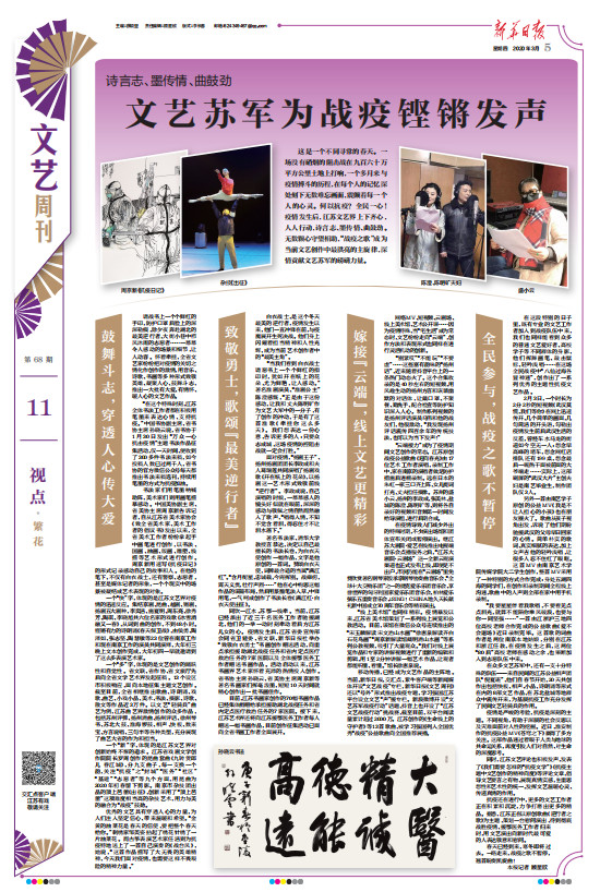 春天已经到来,寒冬即将过去。一路走来,江苏文艺界战疫之歌不暂停,翘首盼奏凯旋曲!
