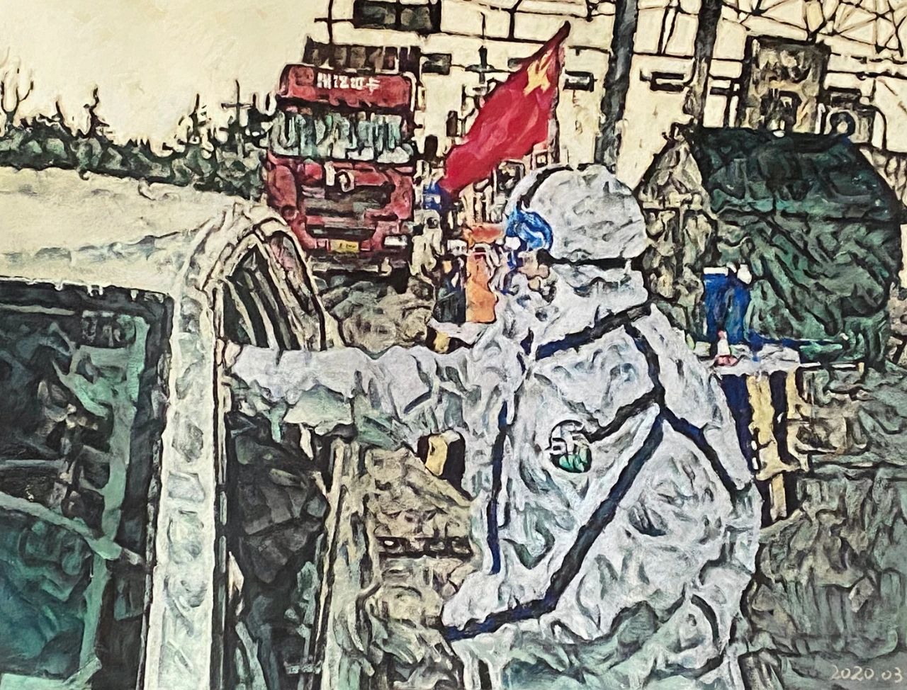 赵方方 抗疫组画《出征》