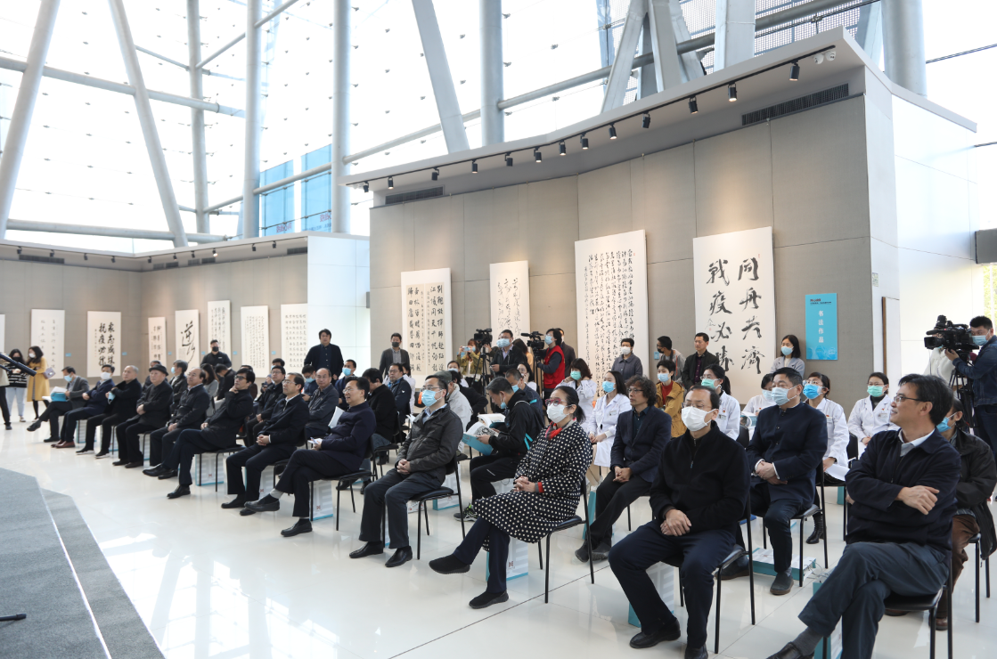 江苏省文联党组成员、副主席、书记处书记刘旭东在开幕式上致辞,他代表江苏省文联,对医务工作者代表和艺术家代表表示热烈的欢迎和诚挚的感谢,感谢医务工作者用生命守护生命,感谢艺术家们用艺术致敬医术!他指出,疫情暴发以来,全国人民在以习近平同志为核心的党中央的坚强领导下,万众一心展开了史无前例的抗疫斗争。我省广大文艺工作者闻令而动,积极响应省委宣传部、省文联的号召,创作了大量戏剧、曲艺、诗词、歌曲、美术、书法等各种形式的文艺作品,动员人民,鼓舞斗志。江苏省书画艺术家精心策划举办“同心战疫”主题作品展,以艺术的方式投身这场惊心动魄的抗疫斗争。他表示,从这场“同心战疫”主题作品展中,我们看到了艺术的多姿多彩、动人心弦,真切地体会到全国人民同舟共济、共克时艰的强大意志,衷心祝愿早日扫除时疫,国泰民安!