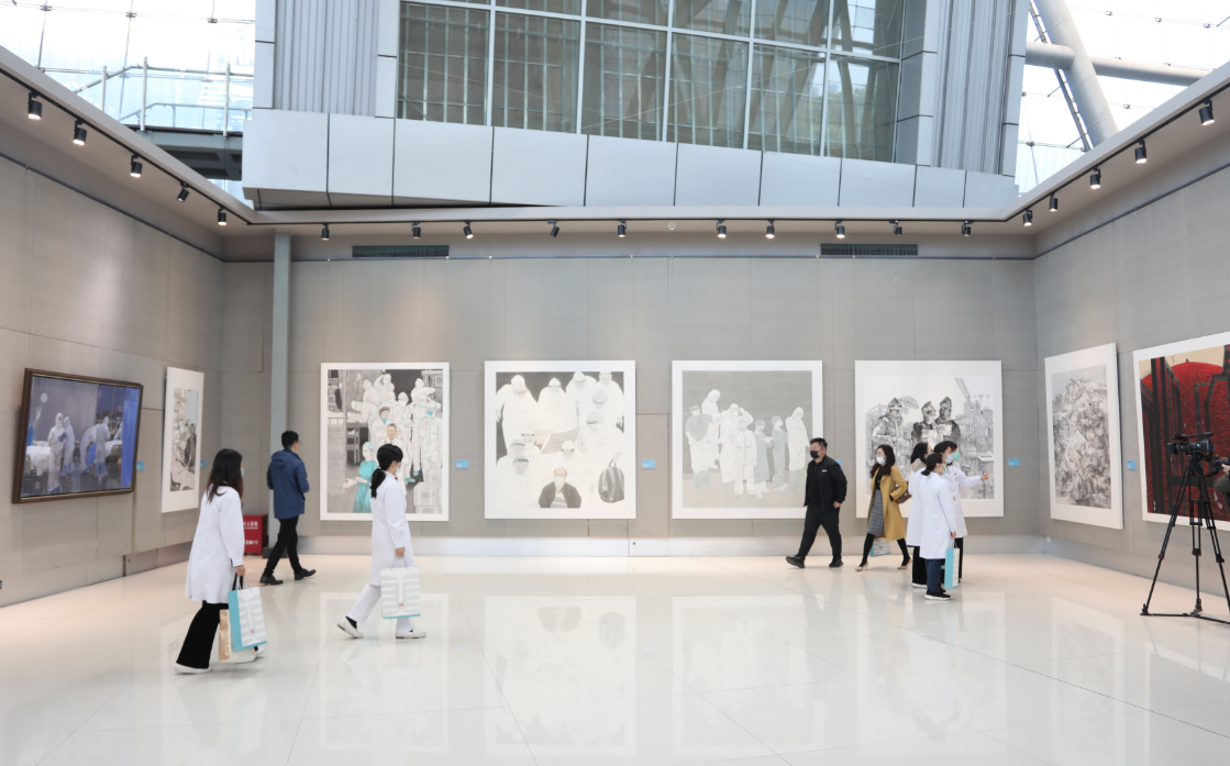 本次展览启动以来,省美协、省书协在特邀部分知名艺术家进行精心创作的同时,还向省级以上协会会员进行了广泛征集。广大书画家踊跃参与,主动用各自擅长的艺术样式记录战疫故事,塑造战疫人物,表达战疫激情,创作了许多温暖人心、激励斗志的作品。本次展览共展出作品236件,其中美术作品涵盖中国画、油画、水彩水粉画、版画、雕塑等,书法形式包括真、草、隶、篆等。这些作品讴歌党、讴歌祖国、讴歌人民、讴歌英雄,主题鲜明突出,内容丰富多元,情感真挚热烈,聚焦了战“疫”中涌现出来的感人形象,讲述了抗击疫情的典型事迹,反映了全国人民众志成城、战胜疫情的坚定信念,体现了广大人民群众团结奋战、共克时艰的精神风貌。