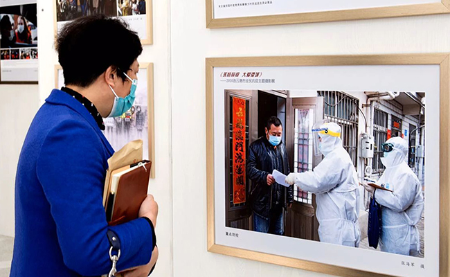 3月24日,由市委宣传部、市文广旅局、报业传媒集团、广电传媒集团、市文联联合主办、市摄影家协会承办的“永恒瞬间大爱港城”——2020连云港市全民抗疫主题摄影展在市行政中心大厅顺利开展,市领导滕雯、陈书军及各主办单位负责人等观看展览,市文联主席王咏梅、副主席俞文文陪同观展。
