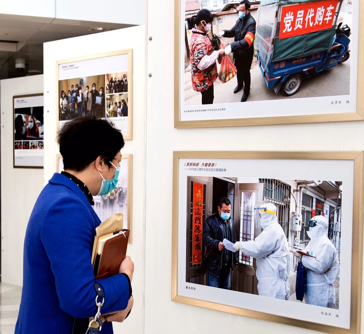 3月24日,由市委宣传部、市文广旅局、报业传媒集团、广电传媒集团、市文联联合主办、市摄影家协会承办的“永恒瞬间大爱港城”——2020连云港市全民抗疫主题摄影展在市行政中心大厅顺利开展,市领导滕雯、陈书军及各主办单位负责人等观看展览,市文联主席王咏梅、副主席俞文文陪同观展。