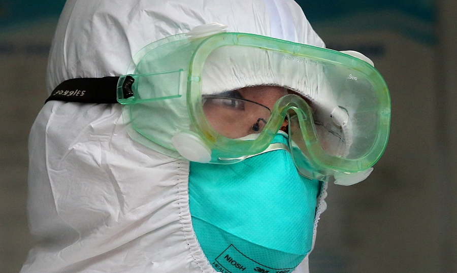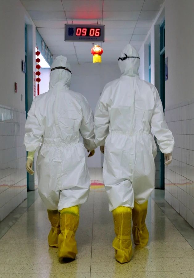 医务人员正在走向隔离防治病区。