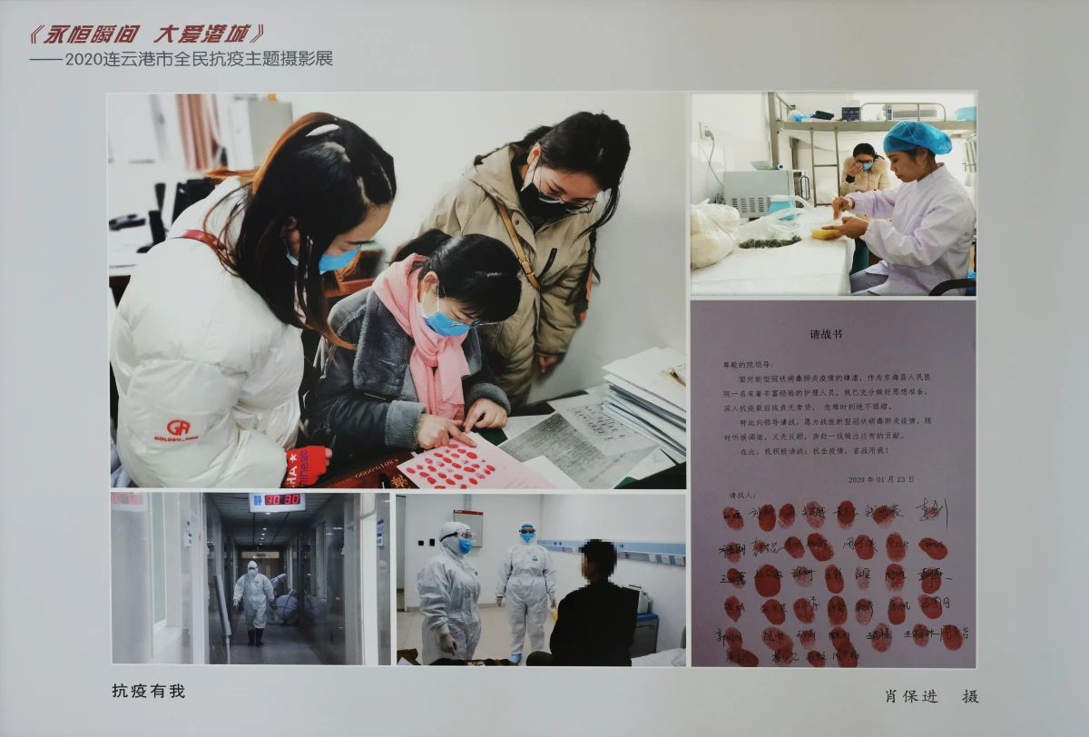 《永恒瞬间,大爱港城》2020连云港市全民抗疫主体摄影展,是市委宣传部、市文联主办的,100多幅由我市摄影家和摄影爱好者拍摄的,我市全民积极参与抗疫的感人精彩瞬间,反映了包括医院、防疫、公安、乡村等各条战线上的人们,积极响应党和政府的号召,“抗疫有我,勇敢逆行”,展现了港城人民的大爱。