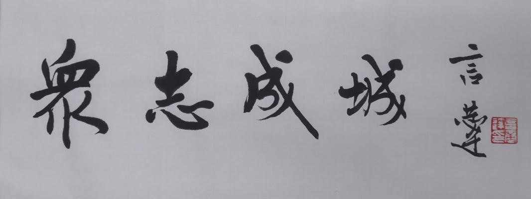 2月12日晚上,徐洪磊连夜完成创作了《众志成城》歌词。第二天,还请清华大学教授、著名文化大家言恭达题写了歌名。
