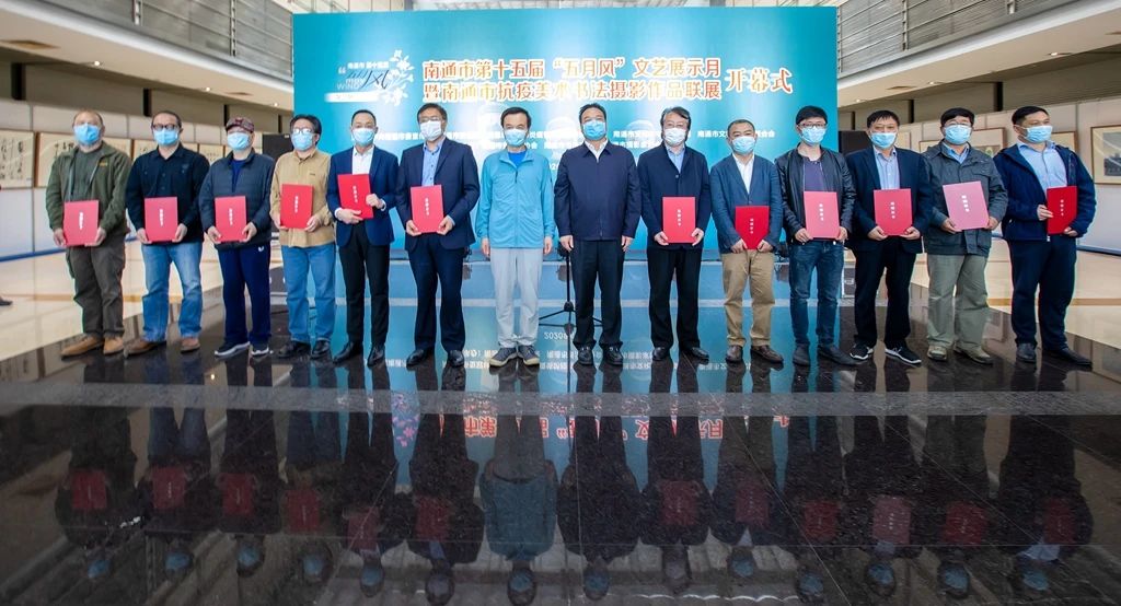 5月6日下午,南通市第十五届“五月风”文艺展示月暨南通市抗疫美术书法摄影作品联展开幕式在市行政中心主楼二楼大厅举行。