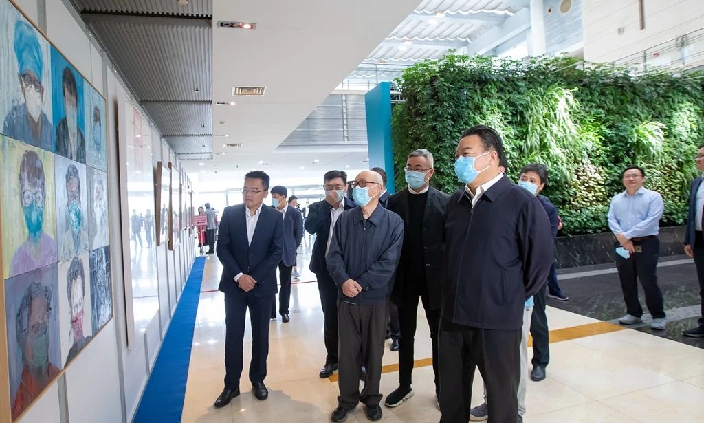开幕式后,领导和嘉宾观看了南通市抗疫美术书法摄影作品联展。