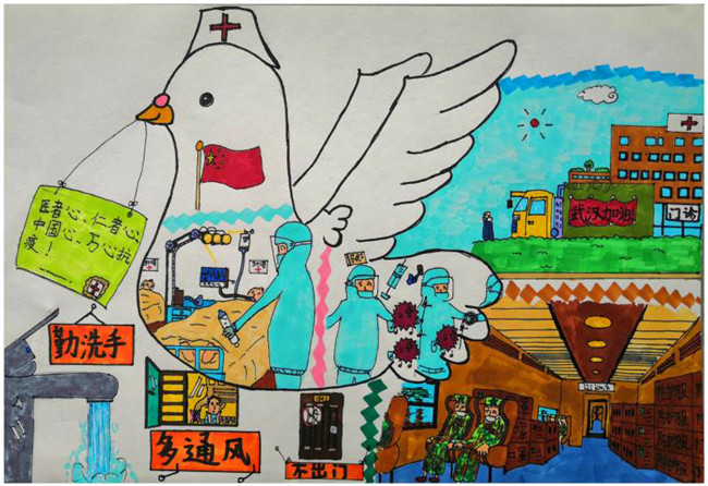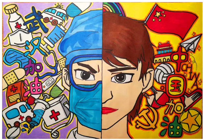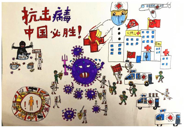 《众志成城战疫情》 顾珈伊 张怡少儿美术