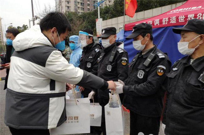 2月21日,苏州民族管弦乐团党支部向社区工作人员赠送羽绒马甲