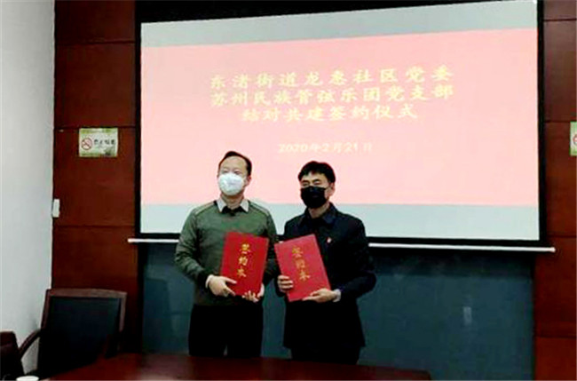 2月21日,苏州民族管弦乐团党支部与高新区东渚街道龙惠社区党委签订基层党组织共建协议