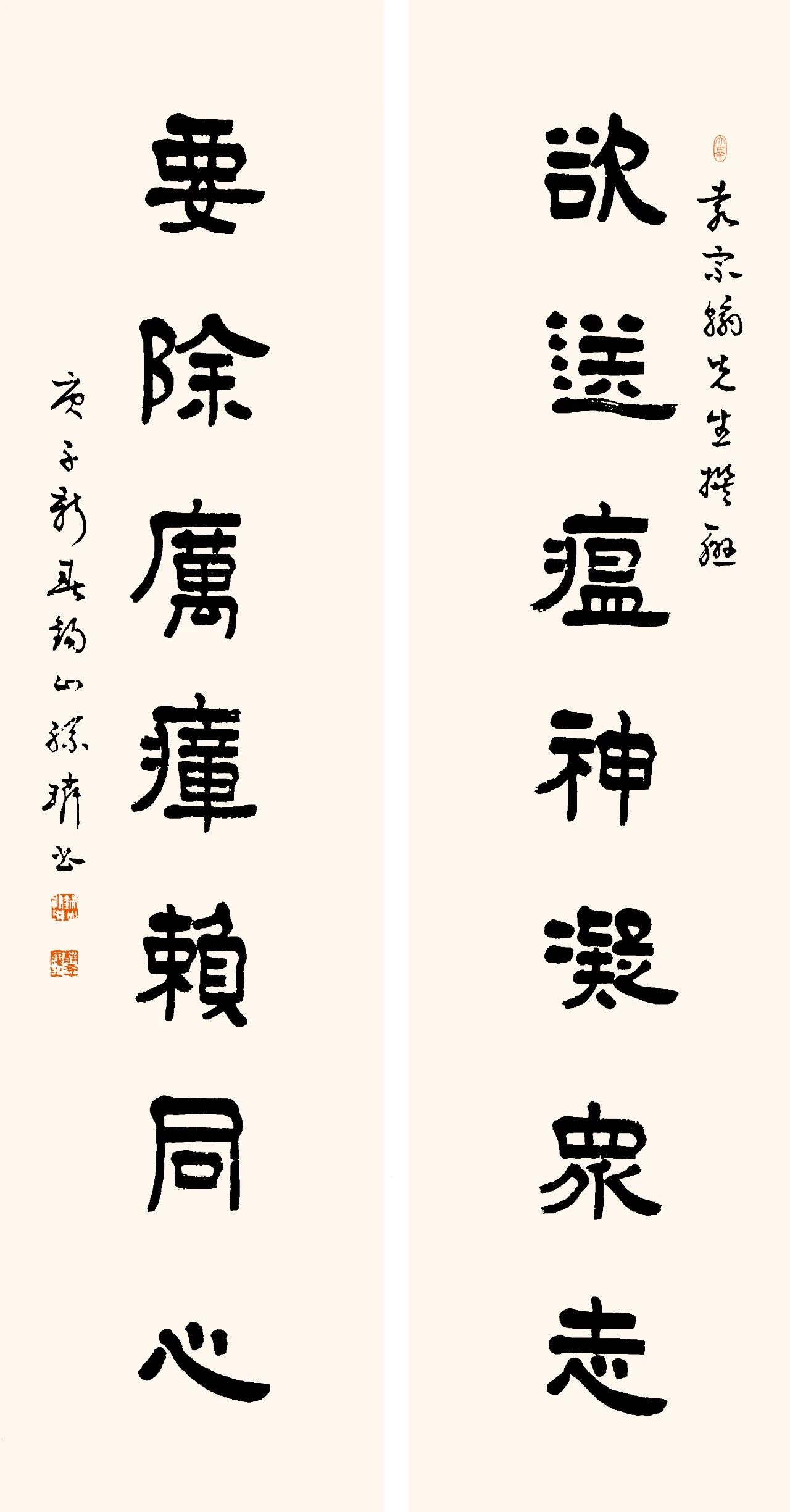释文:欲送瘟神凝众志,要除厉瘴赖同心。
