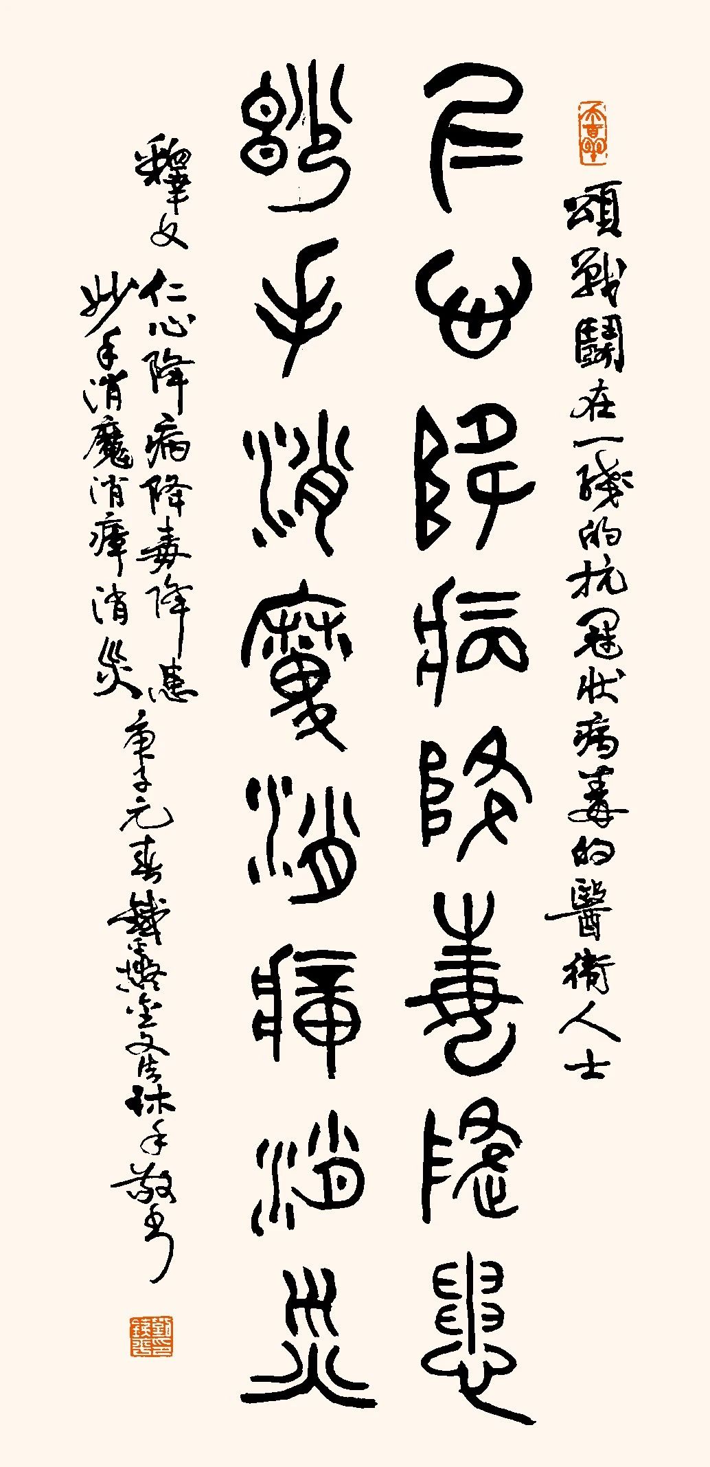 释文:仁心降病降毒降患,妙手消魔消瘴消灾。
