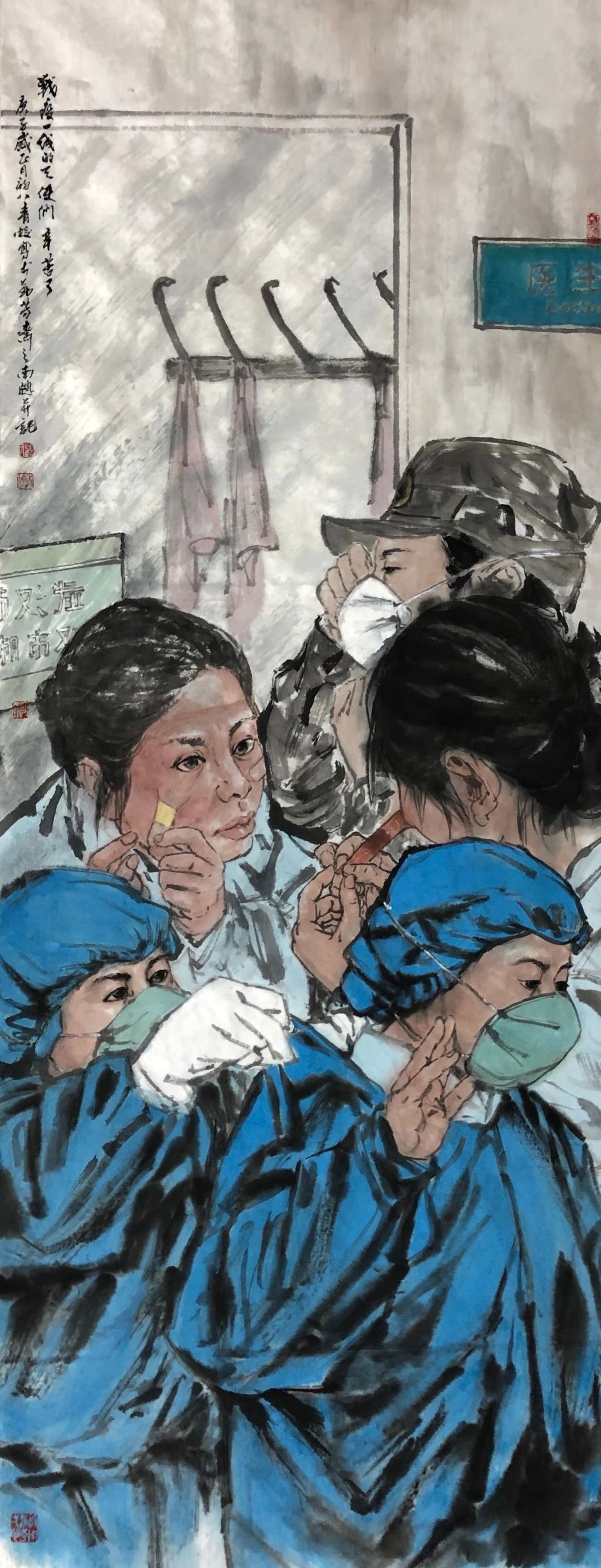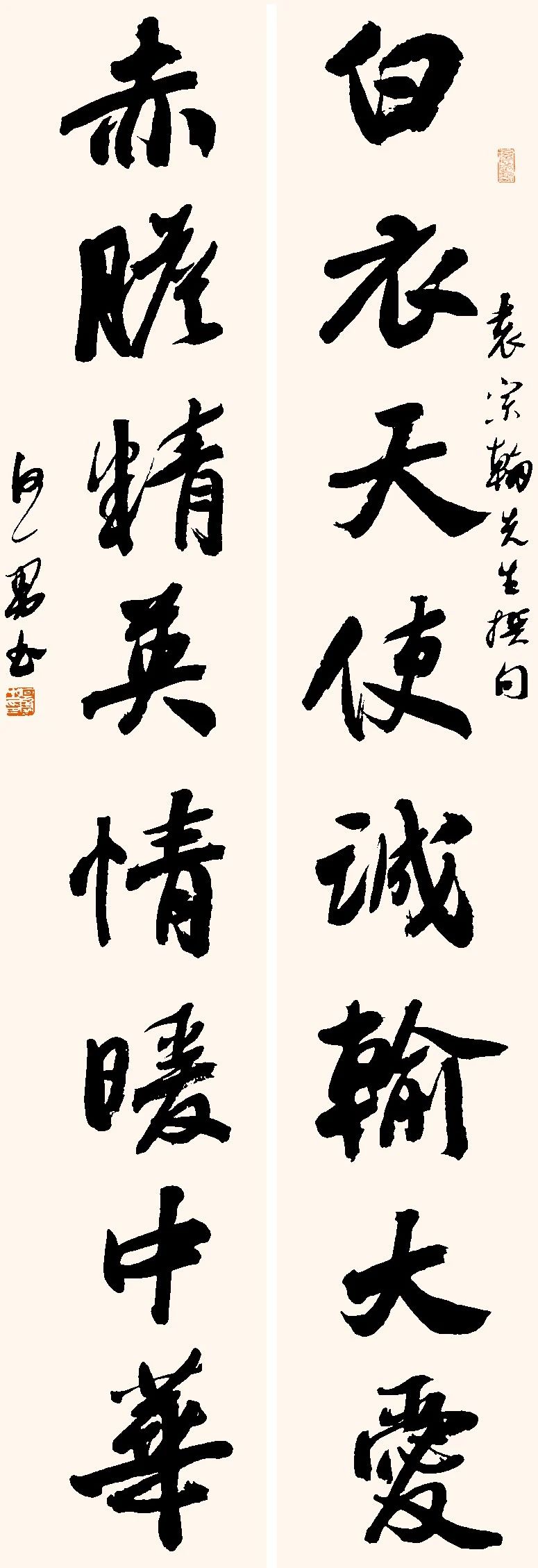释文:白衣天使,诚输大爱;赤胆精英,情暖中华。