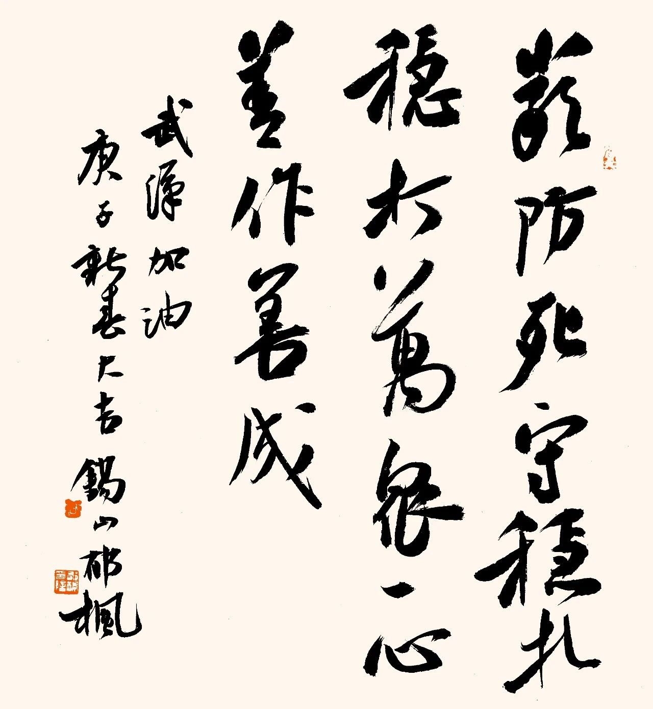 释文:严防死守,稳扎稳打;万众一心,善作善成。