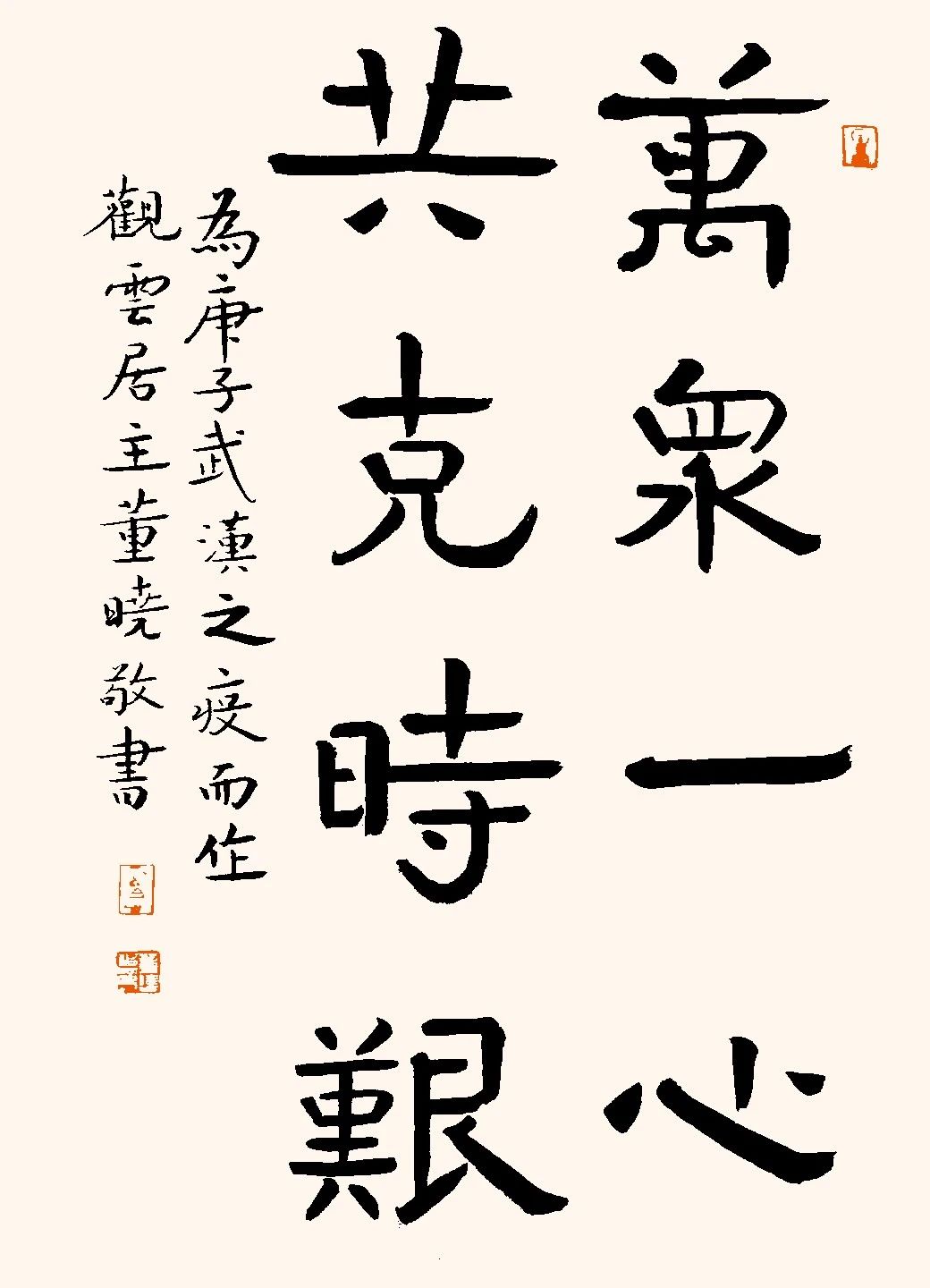释文:阻播控源,全民联手;除魔灭疫,举国同心。