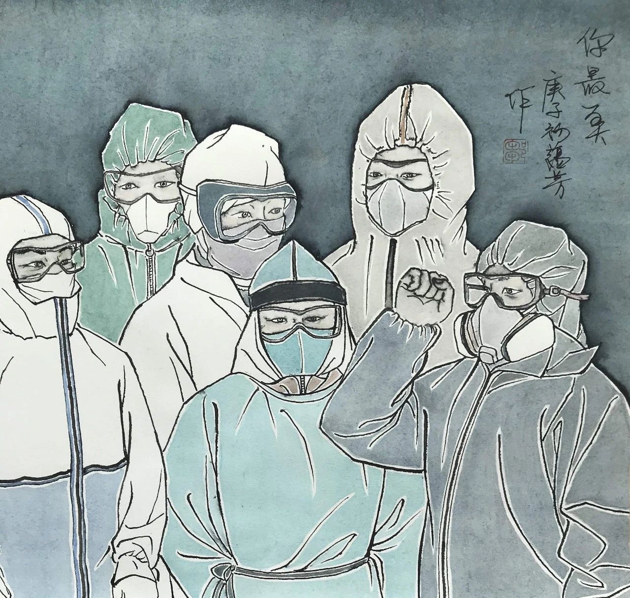 刘明 中国画《抗击疫情》