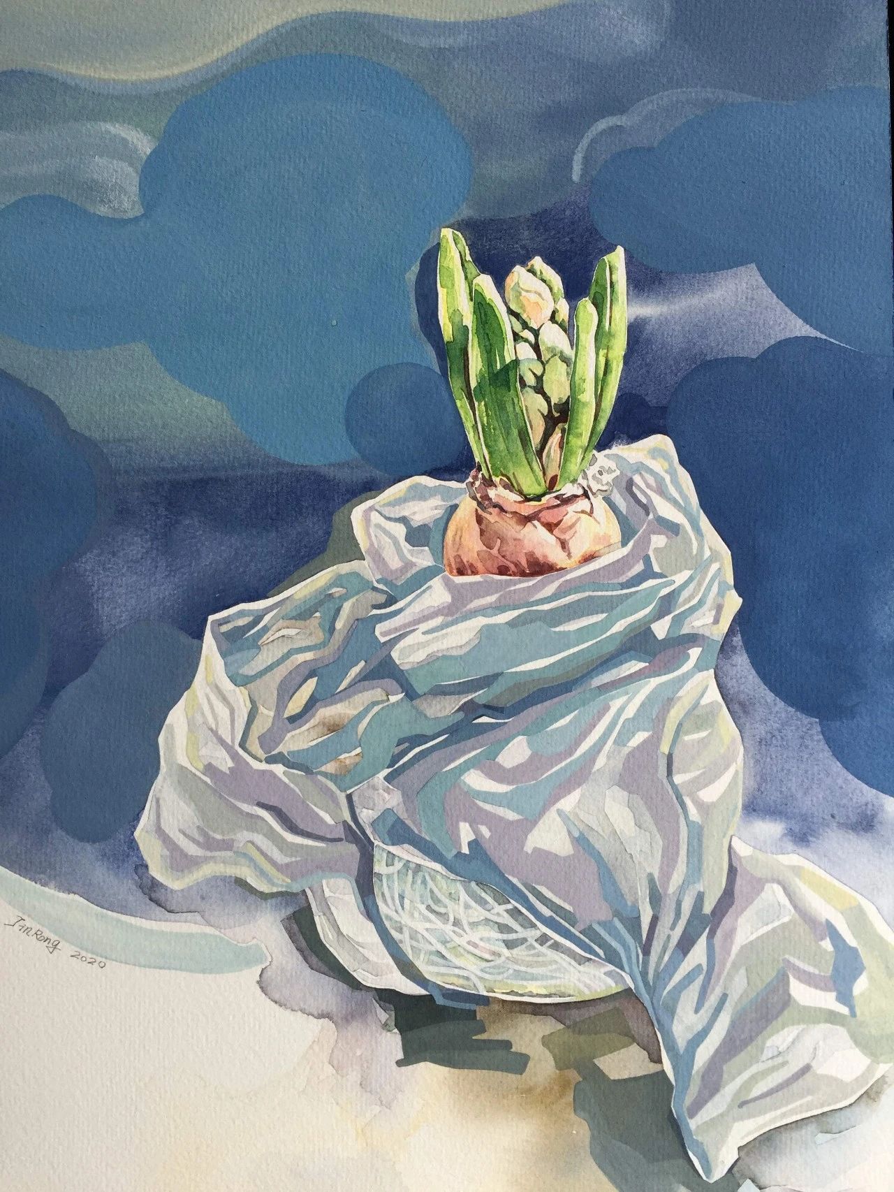 金蓉 水彩画《沧海有月明 万物待春生》
