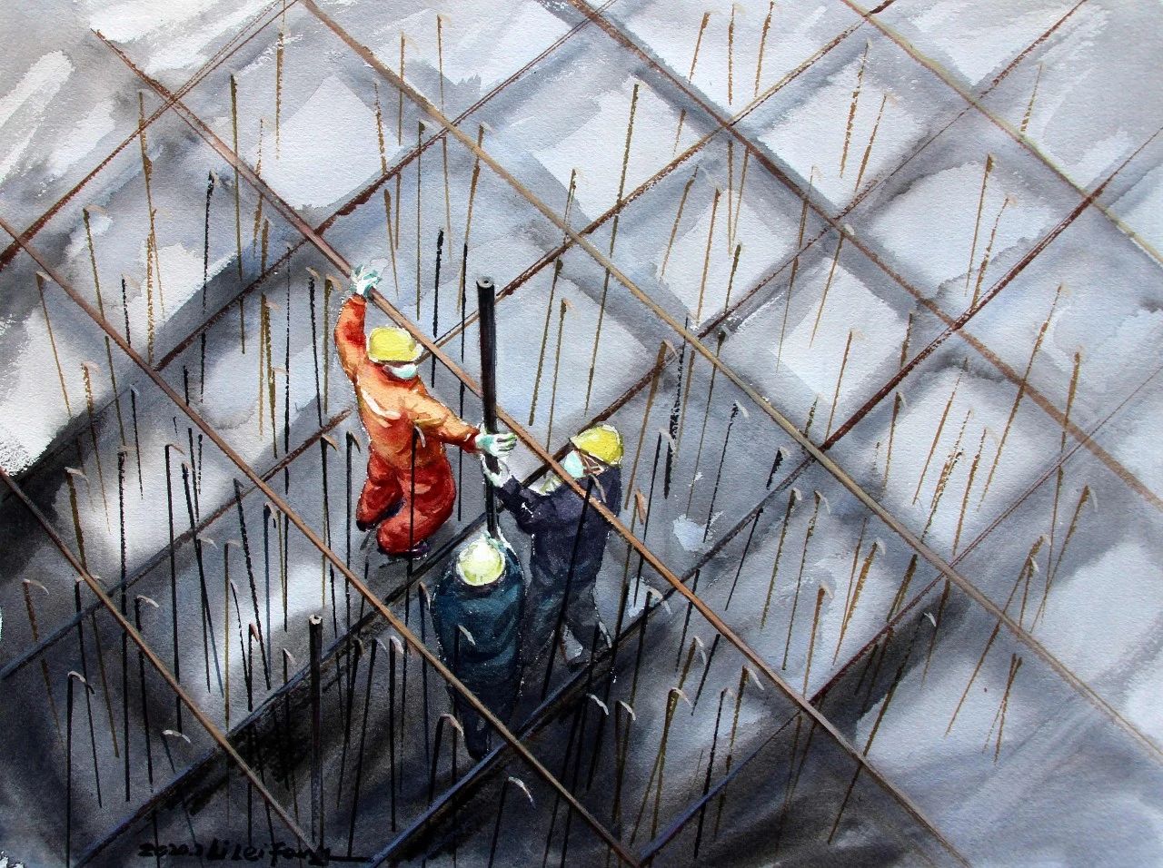 陆冠东 水彩画《争分夺秒》