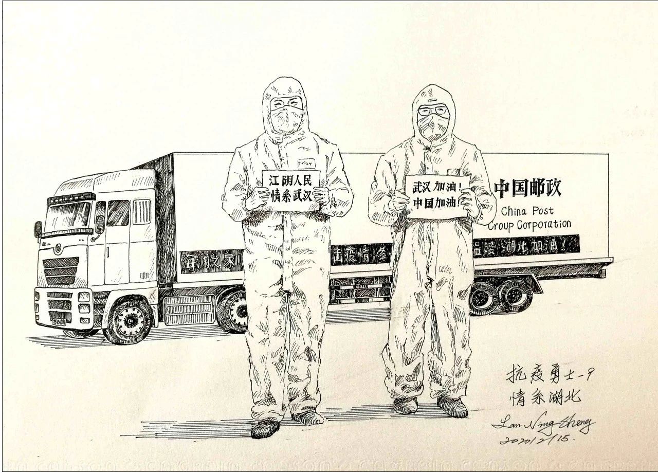 兰宁生 钢笔画《情系湖北》