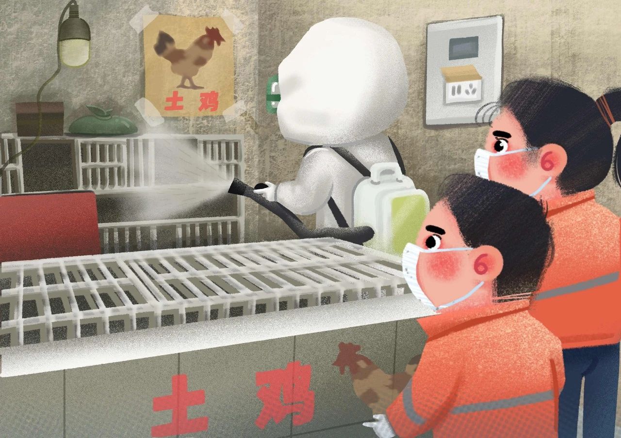 王芳 板绘插画《农贸市场消毒》