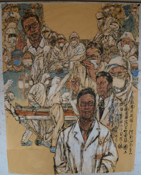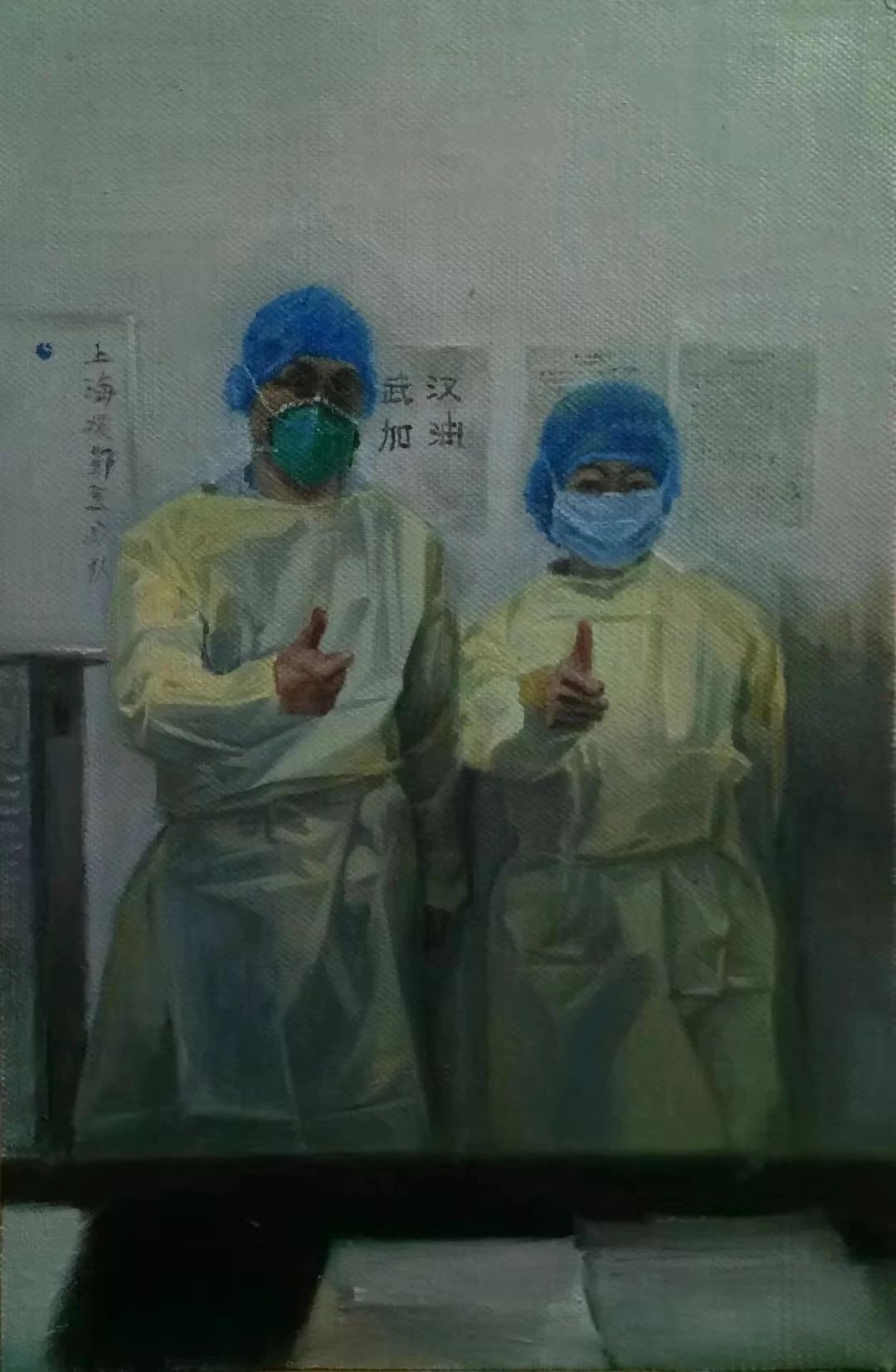 “面对疫情,医务人员、疾控工作者、媒体工作者都是勇敢的逆行者,他们或救死扶伤,或记录现场的勇士,是人民健康的守护者,是真相的探寻者,是不忘初心、牢记使命的践行者。他们就是疫情面前的最美中国人!是时代英雄!”王国宇说:"如果说笔墨当随时代,作为艺术家就该为这些抗疫一线的英雄发声、点赞。”