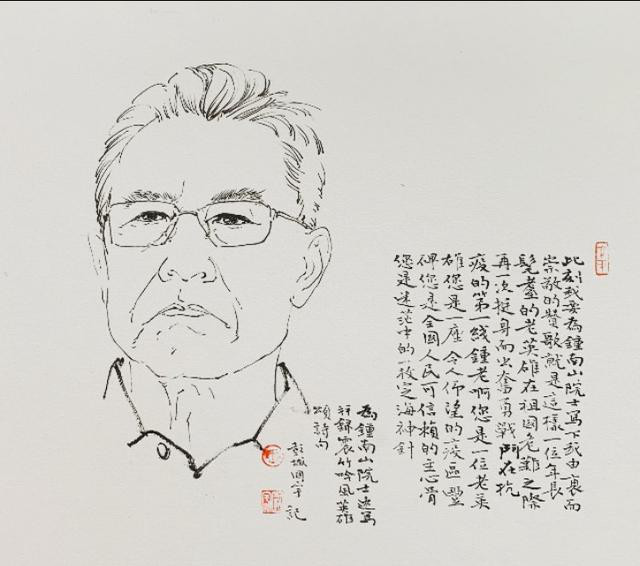 书画家王国宇、画家、民间艺人李汉玉分别创作了4帧速写钟南山“微表情”和10幅《战疫情——英雄当歌》速写作品,讲述了抗疫英雄钟南山等奋战在抗疫一线的“最美逆行者”的故事。