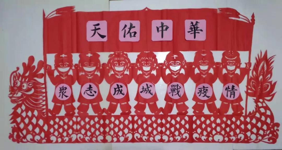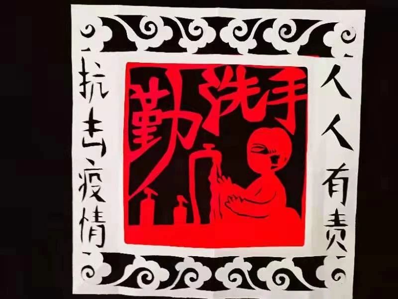 ▲姚红梅剪纸作品《抗击疫情,人人有责》