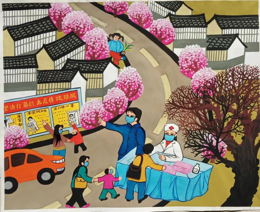 ▲陈良成农民画《全民行动严防死守》52㐅65