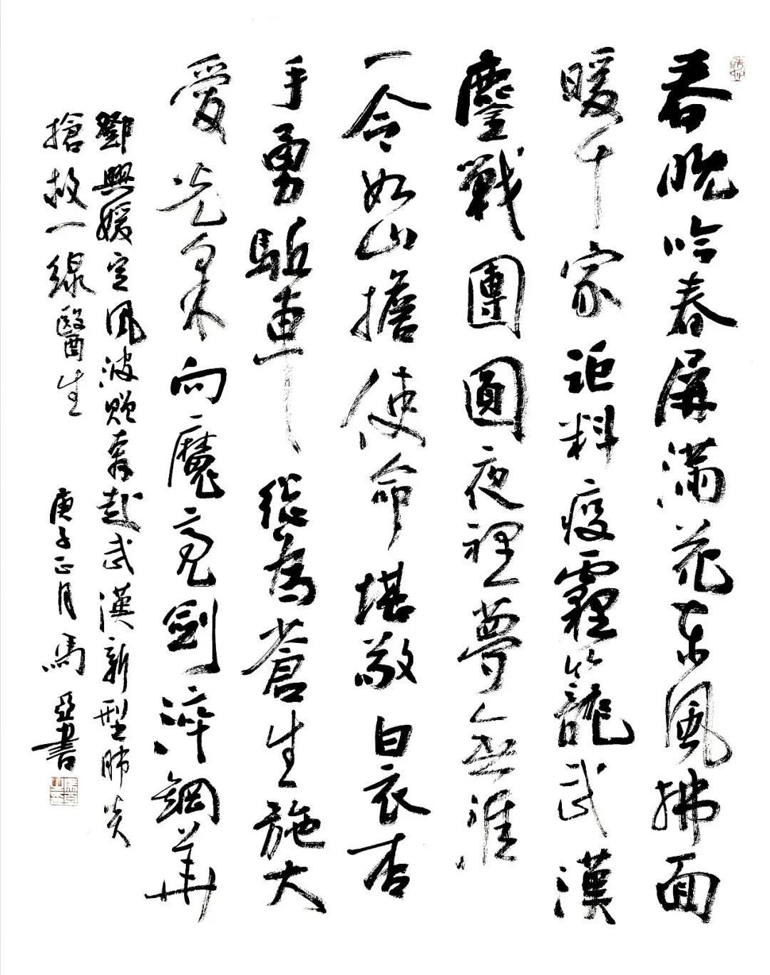 马亚等书法家们用书法凝聚起万众一心、众志成城、全力以赴、共克时艰的强大正能量,以笔墨的形式为抗击疫情贡献书法界的力量!