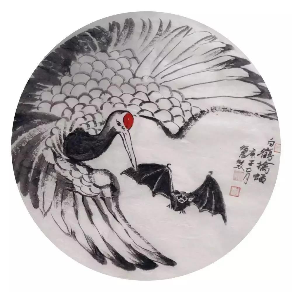 作品说明:这幅作品以奋战一线的医生为启发,“白鹤”象征前线抗疫的英雄医生们,“黑蝠”代表冠状病毒,作品以白鹤的拟人化来表达他们不畏艰险战胜疫情的决心。为他们助力!武汉必胜!中国必胜!