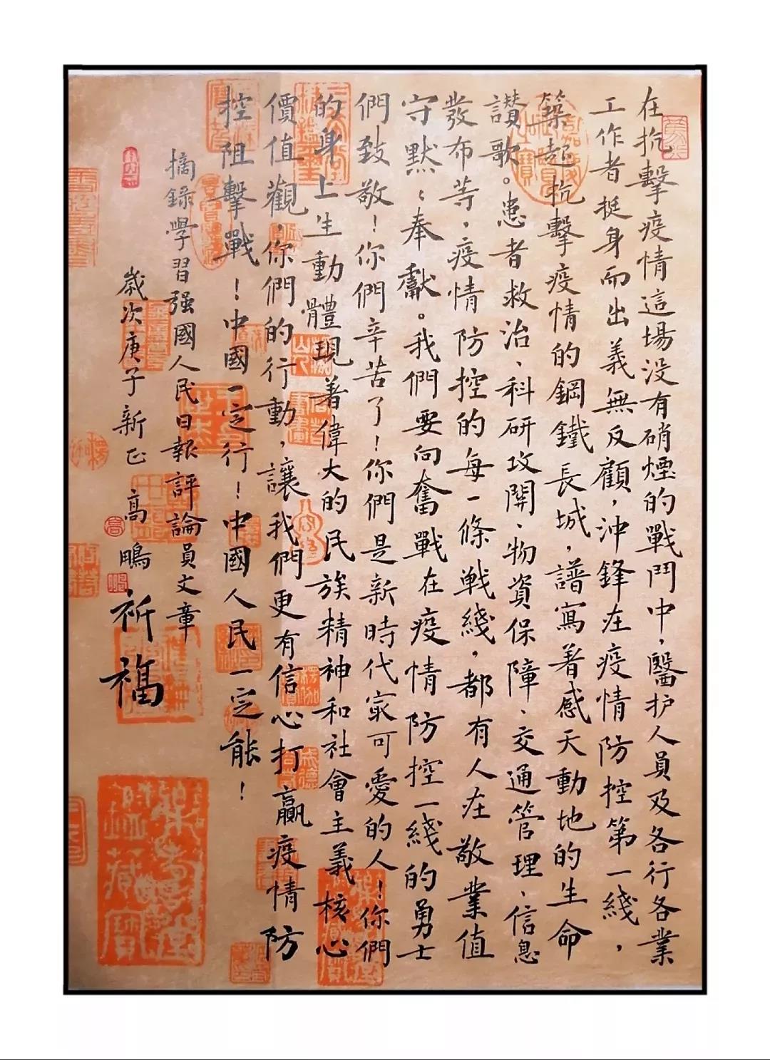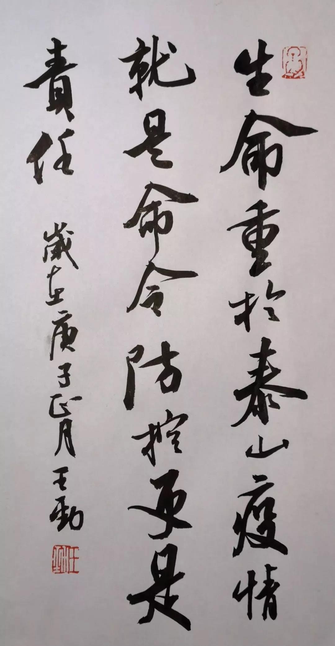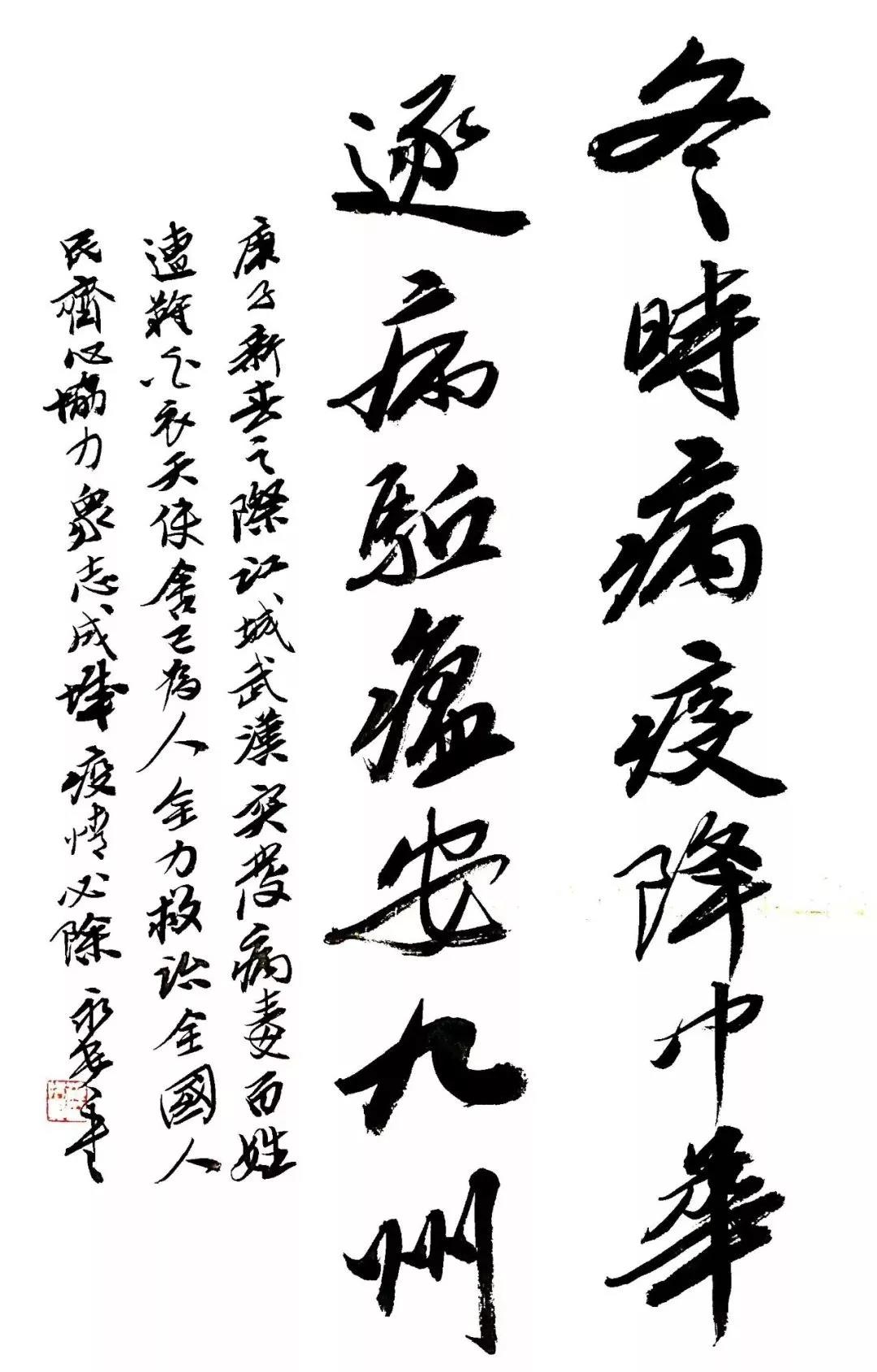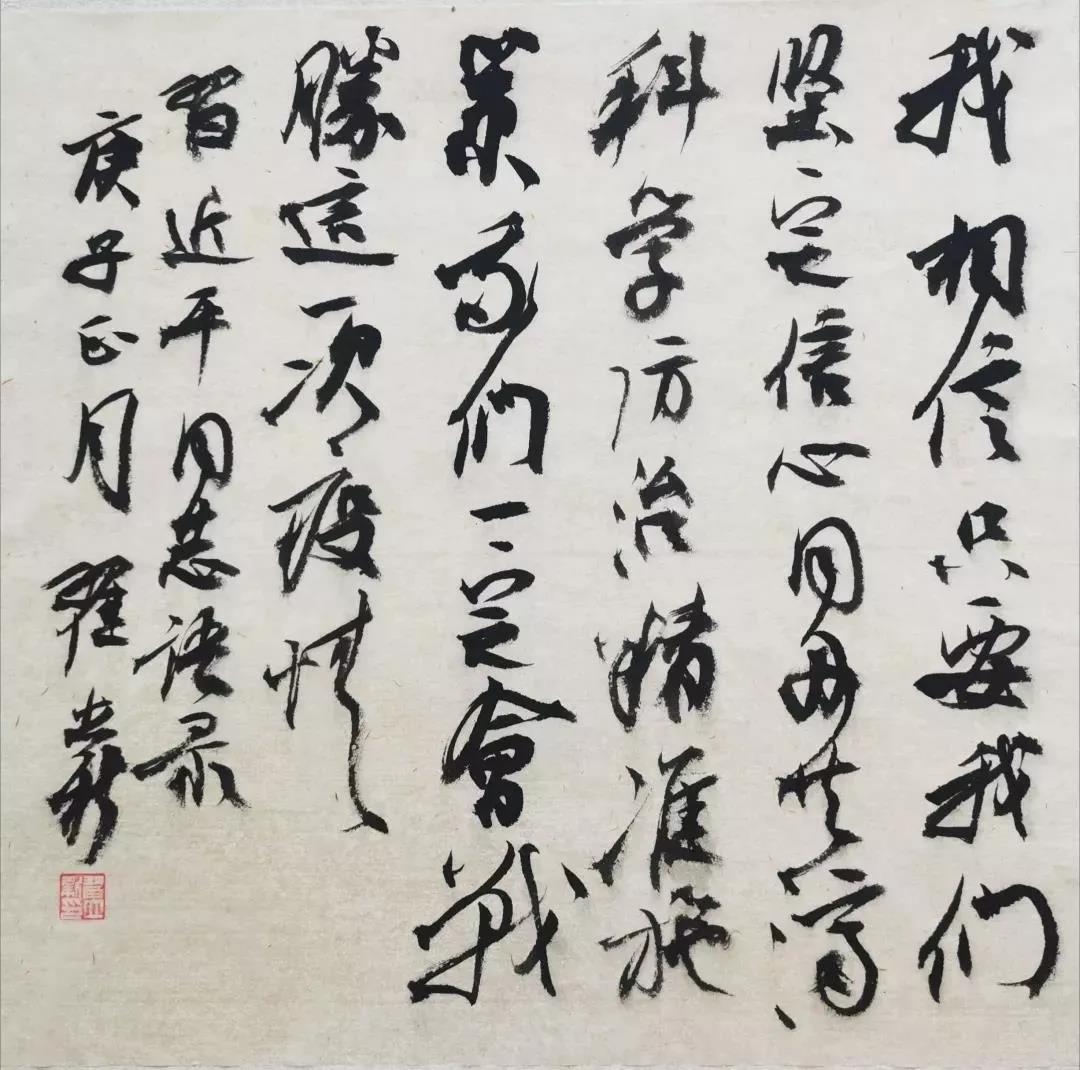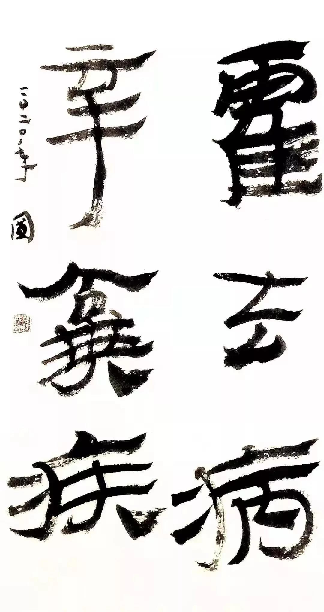 新春伊始,全国打响新型冠状病毒感染肺炎防控阻击战,疫情牵动着徐州广大文艺工作者的心。徐州市文联及所属各文艺家协会坚决贯彻党中央和省、市决策部署,运用多种线上联络方式,向全市文艺界发出倡议,动员全市文艺工作者迅速行动起来,发挥红色文艺轻骑兵精神,共克时艰,创作相关主题文艺作品,为坚决打赢疫情防控阻击战贡献自己的力量!连日来,文学、美术、音乐、曲艺、书法、民间艺术等各艺术门类优秀文艺作品脱颖而出,汇聚徐州文艺界抗击疫情人强大精神力量。下面选送部分书法作品,以飨读者!