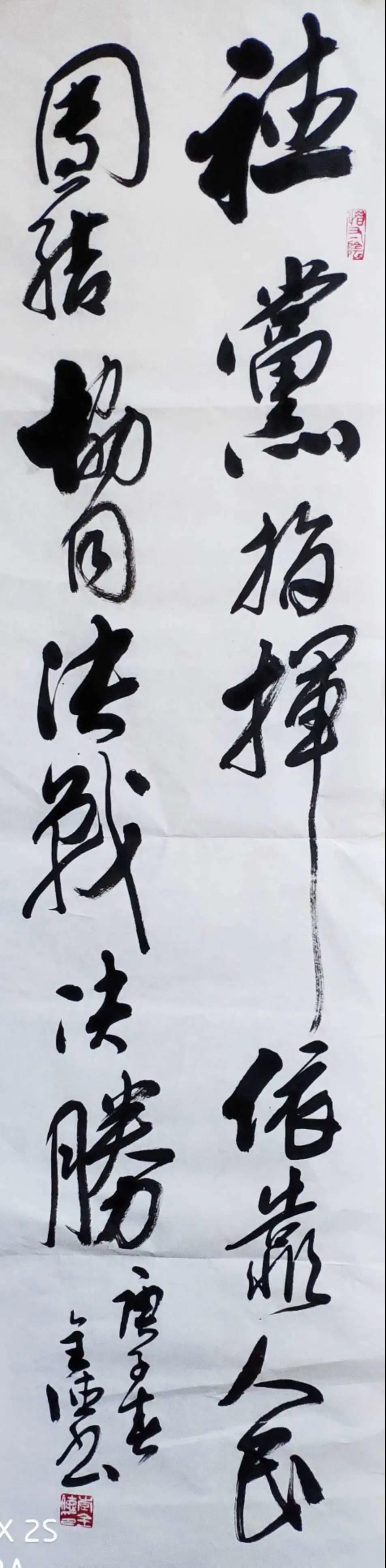作品释文:听党指挥 依靠人民 团结协同 决战决胜