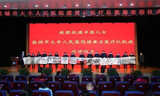 4月10日下午,大丰区文联在区人民医院向16位驰援湖北的白衣勇士捐赠书法、美术作品各一幅。区文联主席何建明,区美术家协会主席彭蔚海,书法家协会副主席顾晓燕等领导、嘉宾出席捐赠仪式。区人民医院院长柏正群主持捐赠仪式。