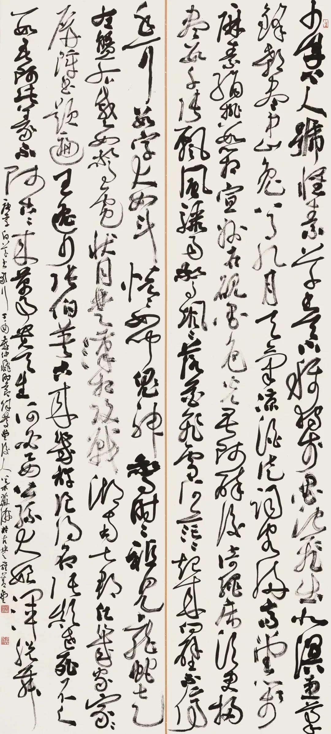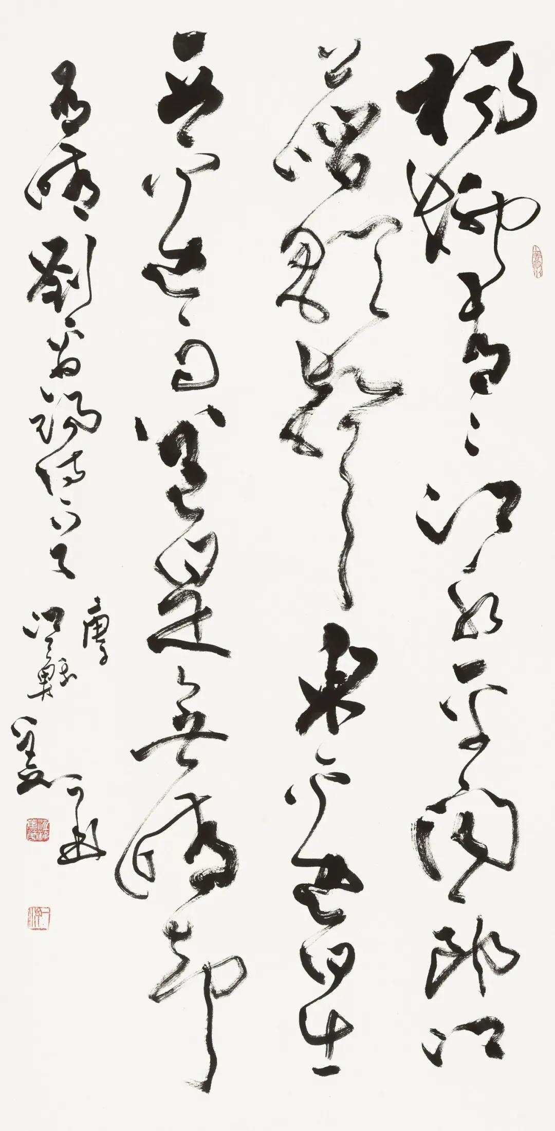 这幅草书我选择唐李白《草书歌行》作为创作的内容,书体和创作内容高度契合。在书法的取法上是以唐大草为基调。节奏掌控力求自若,努力营造大小、长短、轻重、疾涩、浓淡、枯润、虚实关系,使作品产生映带相生,变化叠次的效果。