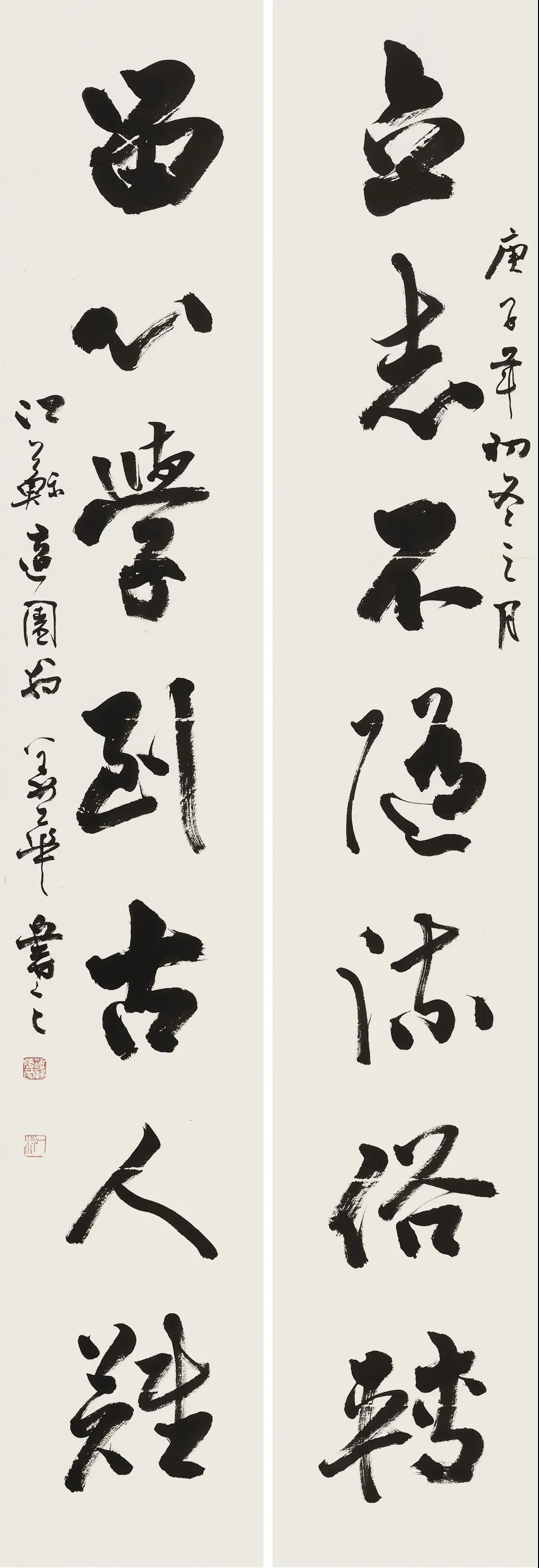 《立志不随流俗转,留心学到古人难》是一则对联,通常用以教育人要学习古代的圣贤,不能够随波逐流,不能够为世俗所累。以行书创作此联意在与全省文艺界共勉并贺春。