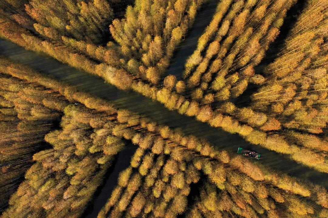 江苏规模最大的人工湿地生态林—金湖水上森林公园,独特的航拍视角,使画面更加简约,畅游其中,探秘自然、静谧与和谐。