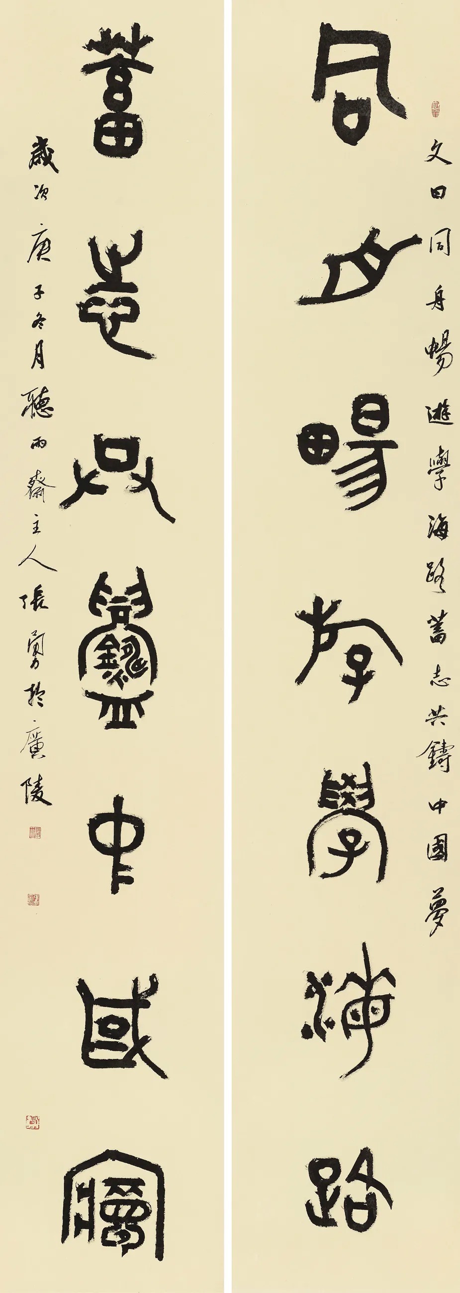 一元复始,万象更新,草木欣欣,春和景明。以正大气象的大字楷书楹联,讴歌新春、讴歌伟大时代。