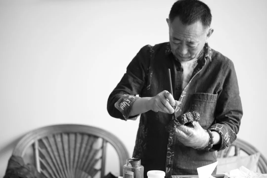 以往的线条清劲挺健,起止分明,以骨力和韵致胜;而现在则明显增加了用笔的分量,时见沉雄苍茫。以中锋为主调,加上犁头破土般的逆势用笔以及破锋皴擦,使线条呈现筋骨相融的雄肆力感,精致中时出老辣。