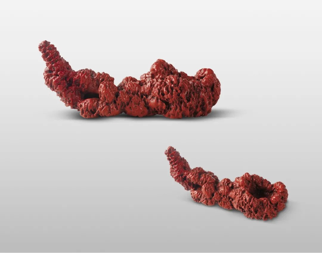 红雕漆笔架涂漆100道创意根据天然外形堆漆,待漆硬化用从粗至细的瓦灰,不断刷洗打磨,以达到婴儿肌肤般手感,吉祥如意,通体无棱,圆滑光洁朴素大方,是不可复制的雕漆精品。