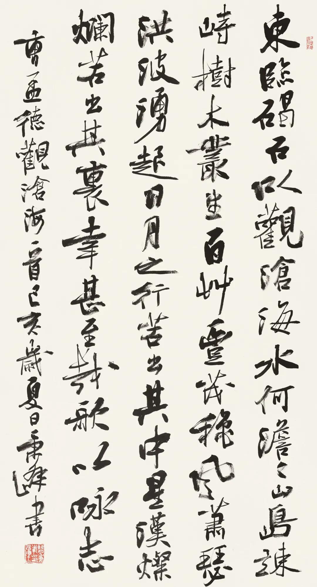 书写时厚重、沉作,表现了全诗苍茫、雄强的气势。