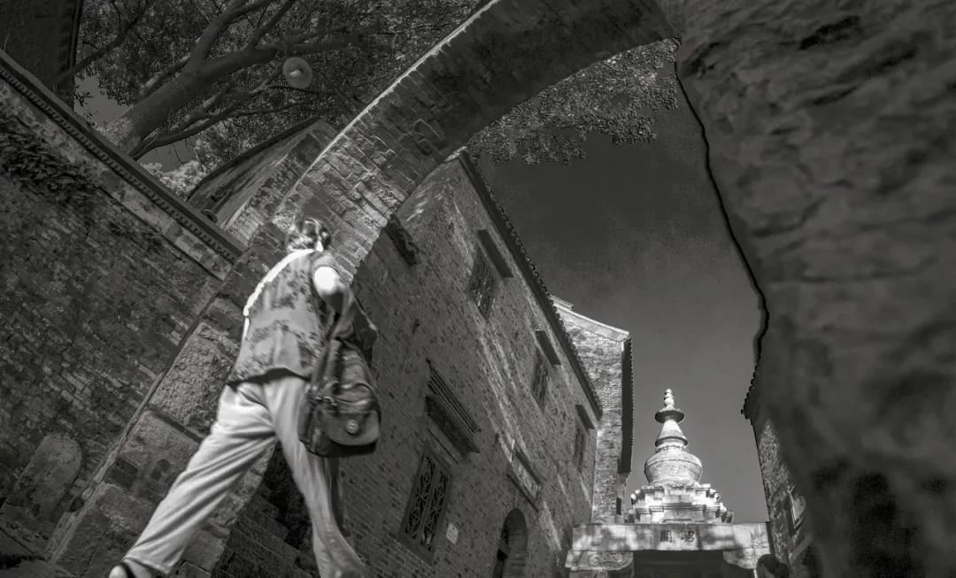 昭关石塔位于镇江西津渡街,全国重点文保单位,全国唯一保护完整的元代过街石塔。怎样把老街的痕迹,石塔的雄壮,现代生活节拍感表现到位是个难题。通过观察、思考,决定采用低机位,大视角,充分利用线条的动态感与石塔的雄壮形成对比,深入表现老街的岁月,古塔的沧桑。