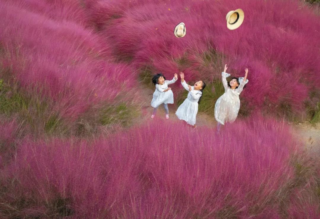 正在粉红色的粉黛乱子草丛中玩耍的儿童。儿童是祖国的未来,他们的健康成长至关重要。利用高速快门抓拍他们玩耍的瞬间,力求通过作品来反映儿童们快乐向上的精神风貌。