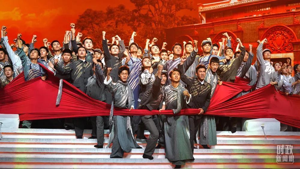 庆祝中国共产党成立100周年文艺演出《伟大征程》,第一篇章“浴火前行”演出片段。(总台央视记者魏帮军拍摄)