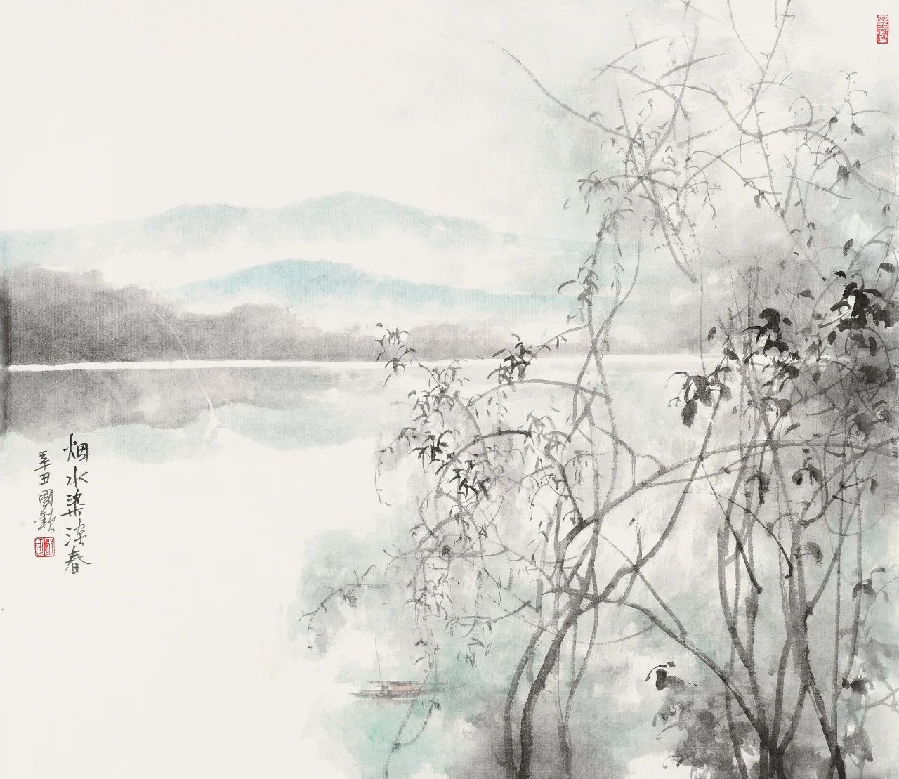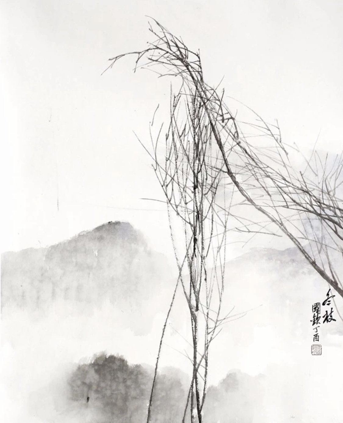 三枝两叶,虽笔简意远,少中见多,却能让人看到画外之景、画外之意。笔尽,而意无境也。