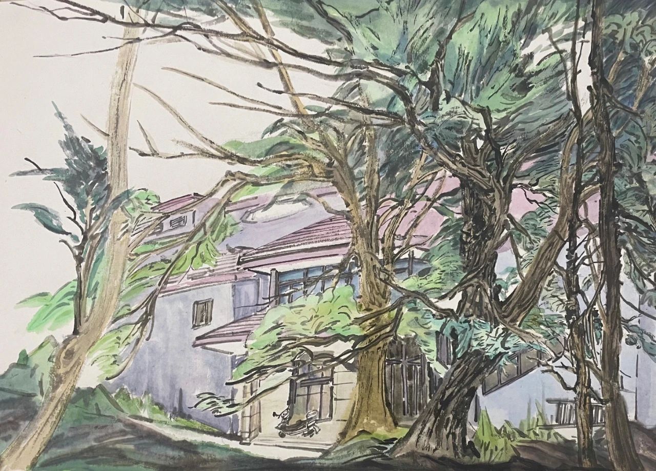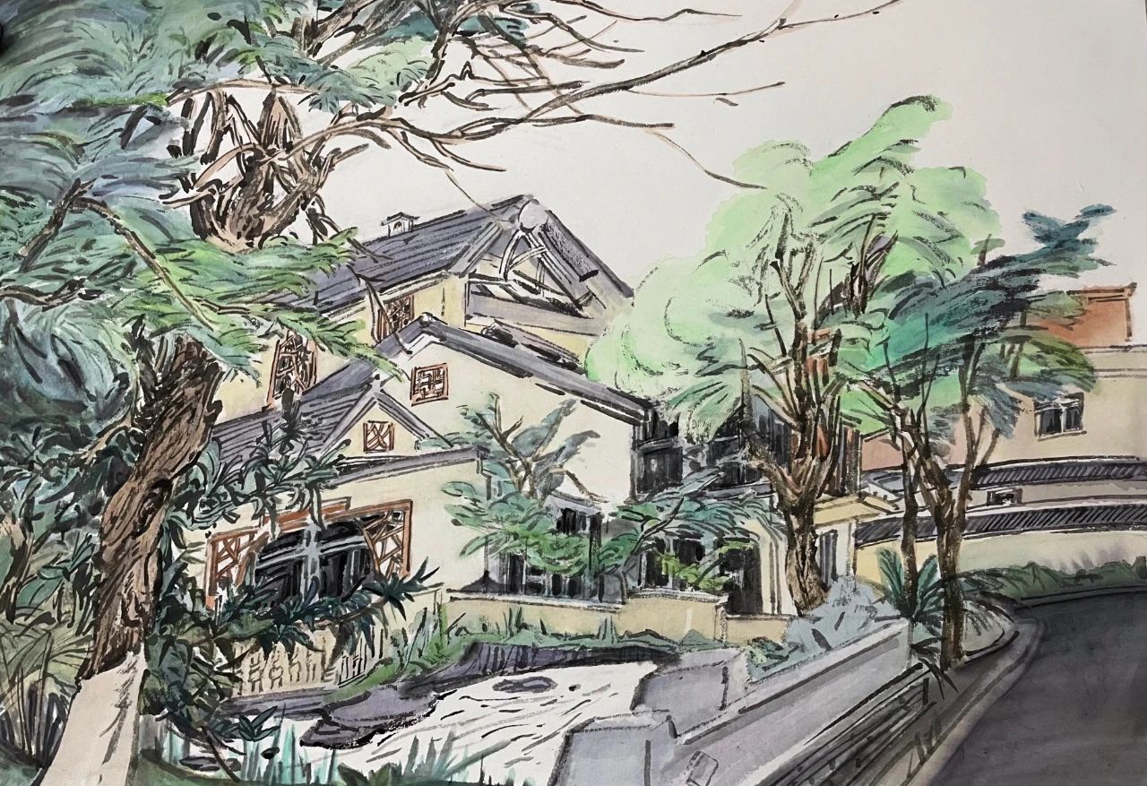 两天,我们走访了四个村子,朝辞华西村绿色农业园,夕至长江村江边码头现代工业区。在开弦弓村河畔几株老泡桐前放笔直写那一树一树的繁花灿烂,仿佛梦入陶渊明笔下的世外桃源。深刻感受百年江村的时代巨变。古泉村的美,不仅仅是她的清溪绕屋,鸟语花香,更在她老吾老,以及人之老;幼吾幼,以及人之幼,温暖人心的大情怀。此次入村采风,收获颇丰,开阔了眼界,丰富了笔墨。归来图画三幅,以期从不同角度展现祖国的乡村新貌。