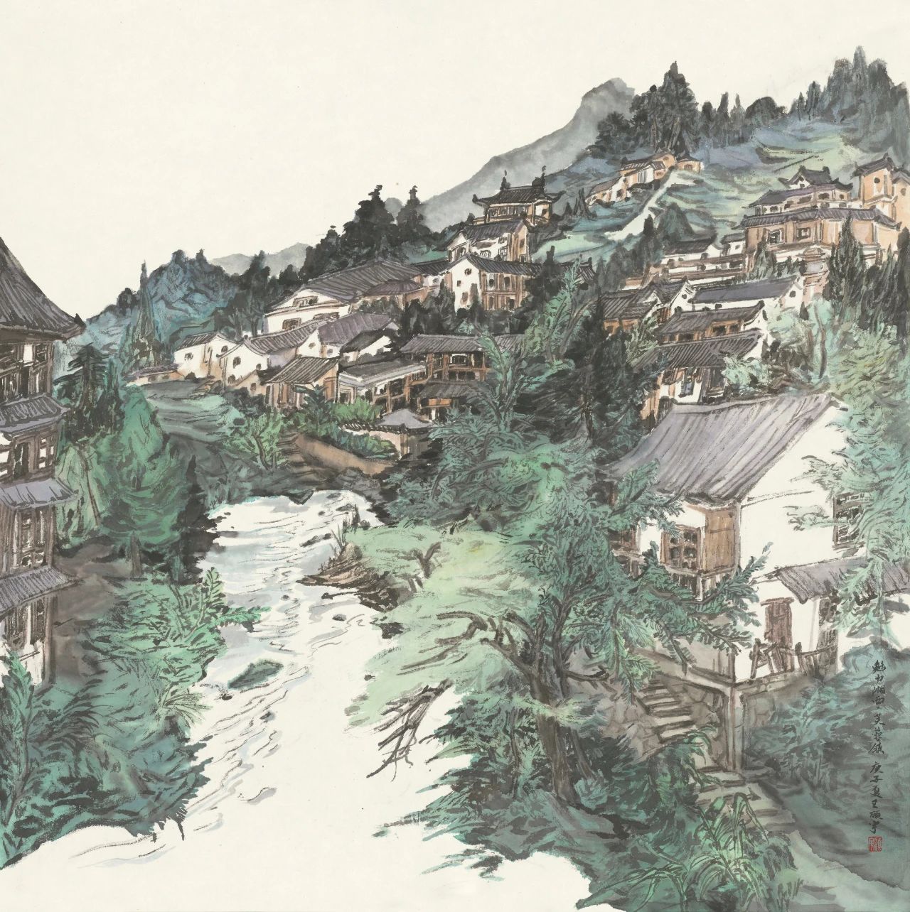 6月22日,“走进小康村”——江苏省美术书法摄影展在江村开幕,展出艺术家们精心创作的书画、摄影百件佳作,礼赞全面小康,致敬建党百年。我们把每位艺术家们倾注于笔端的小康胜景,收录整理,形成系列专辑,向党的百年华诞献上来自乡村的生动画卷。此次王顾宇创作的小康村作品笔调韵味,既有深厚的传统绘画底蕴,更有艺术家对于现实自然的一种新体会。在笔墨的运用上,挥洒自由,率性抒写,个性十足。今天我们就一起来欣赏王顾宇率真大气的小康村。