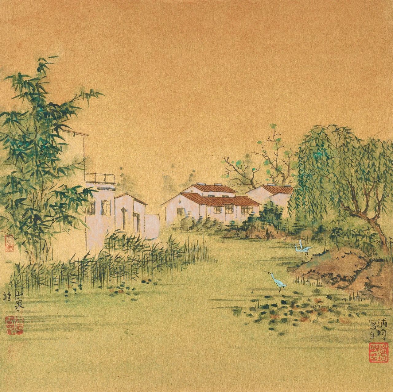 6月22日,“走进小康村”——江苏省美术书法摄影展在江村开幕,展出艺术家们精心创作的书画、摄影百件佳作,礼赞全面小康,致敬建党百年。我们把每位艺术家们倾注于笔端的小康胜景,收录整理,形成系列专辑,向党的百年华诞献上来自乡村的生动画卷。本次活动浦均创作了一组小康村系列画,青砖白墙、杨柳白鹭,画面清新淡雅,质朴平和。薛亮先生曾说:“浦均素喜倪瓒、弘仁之平和,其心无旁骛,能沉静安然。与其个性相合,所作山水无非近坡远岚、青云淡雾。垂柳古松间白鹭野鸭,往往清新田园。无博大宏伟而淡雅含蓄,逐自然本真、擢世间生趣融入冥想之境。其作品涵前人之静谧清幽,似高雅而实平易。能变倪迂之萧寒枯逸与隐遁出世为煦暖可亲与淡然入世,体裁及境界隐显世俗关怀”。今天我们就一起走近沉静安然的浦均,赏其笔下温润平和的小康村。