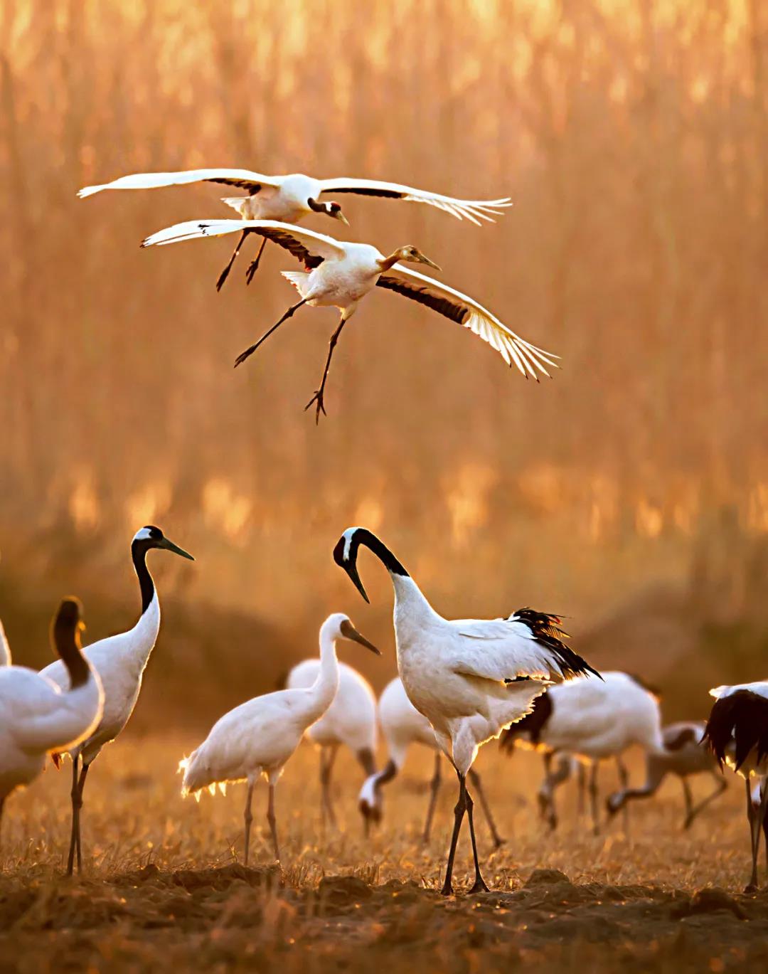 “美好江苏”摄影专题之二《比翼双飞》,丹顶鹤是国际一级重点保护动物。丹顶鹤又经常被称之为仙鹤,是世界上珍贵的鸟类,全世界共有15种鹤,我国共有9种,占一半以上。丹顶鹤是吉祥的象征,自古以来就有松鹤延年的说法。诸鹤之中,以体形秀丽来隐喻长寿之意。