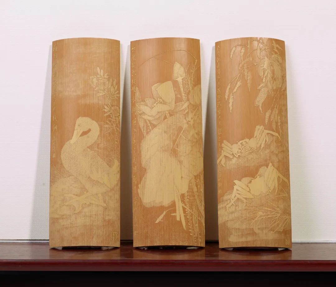 留青竹刻《绿色池塘》 沈华强 100*8*35cm