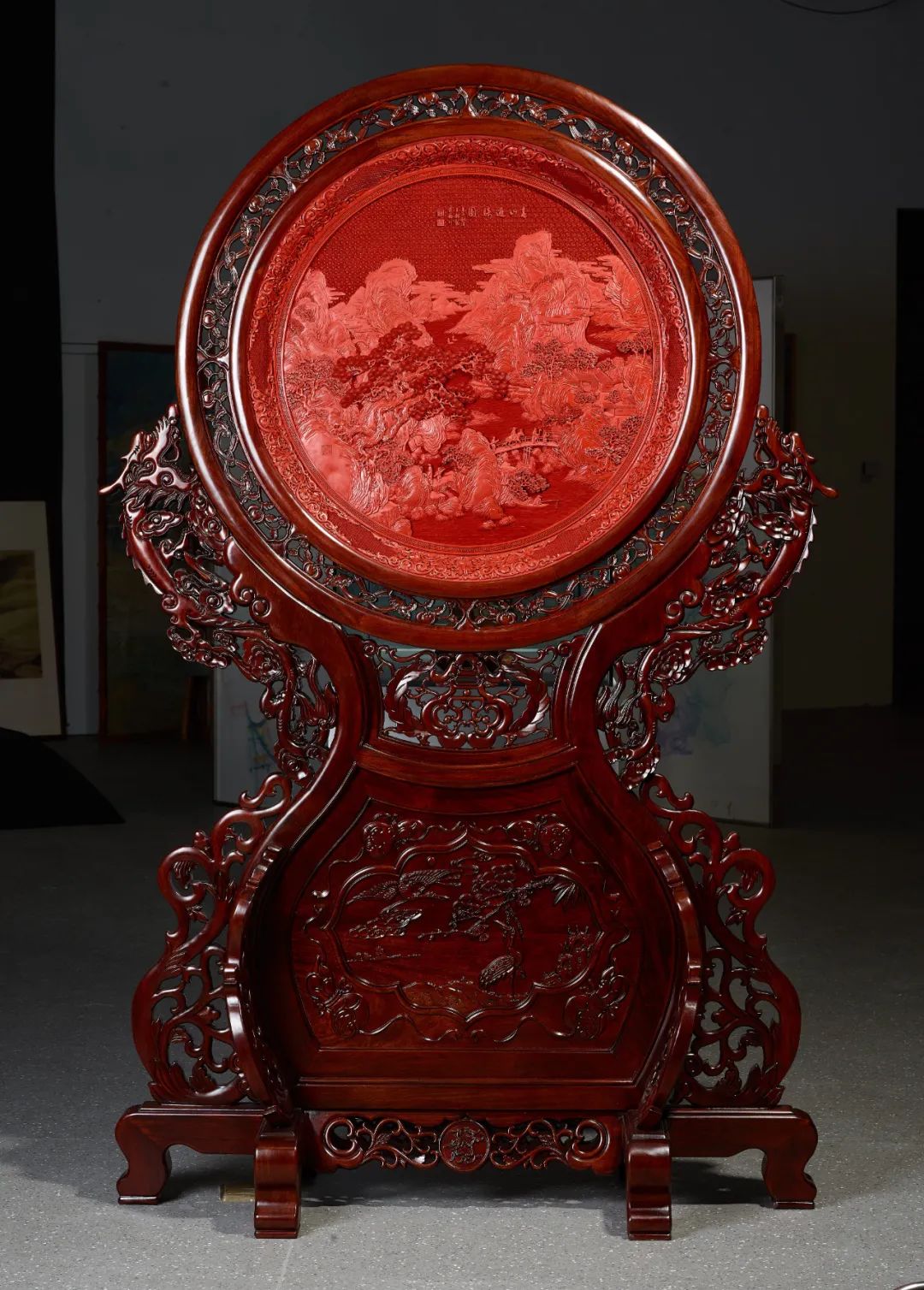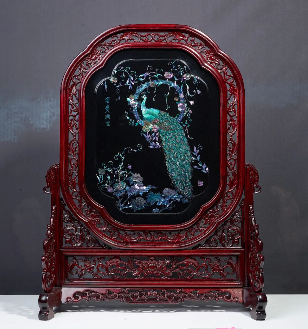 漆器 点螺台屏《富贵满堂》 张太珍 吴涛、张昕 50*40*60cm